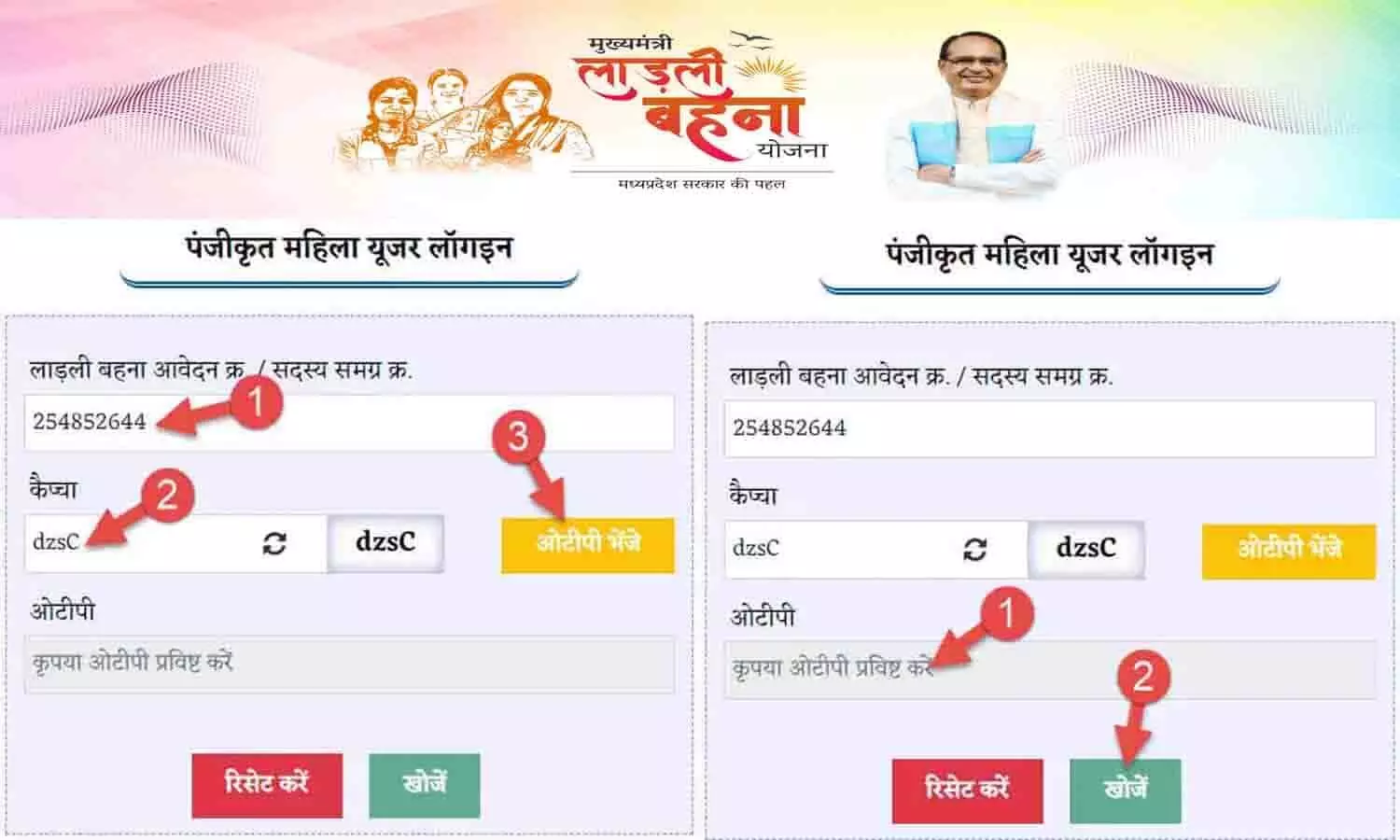 -जैसे ही ओटीपी कोड वेरीफाई होगा, स्क्रीन पर लाड़ली बहना योजना आवेदन एवं पेमेंट का स्टेटस खुल जायेगा।