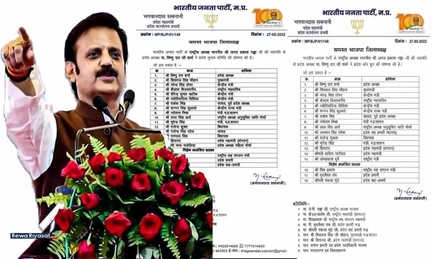 MP BJP State Core Group & Election Committee List: भाजपा के राष्ट्रीय अध्यक्ष जेपी नड्डा के दौरे के ठीक पहले मध्यप्रदेश भाजपा की कोर ग्रुप एवं चुनाव समिति की सूची जारी कर दी गई है. धुरविरोधी सिंधिया-पवैया के अलावा मंत्रियों में सिर्फ नरोत्तम मिश्रा एवं भूपेंद्र सिंह को जगह मिली है. वहीं पूर्व मंत्री एवं रीवा विधायक राजेंद्र शुक्ल (Rajendra Shukla) का कद संगठन स्तर पर बढ़ा है.