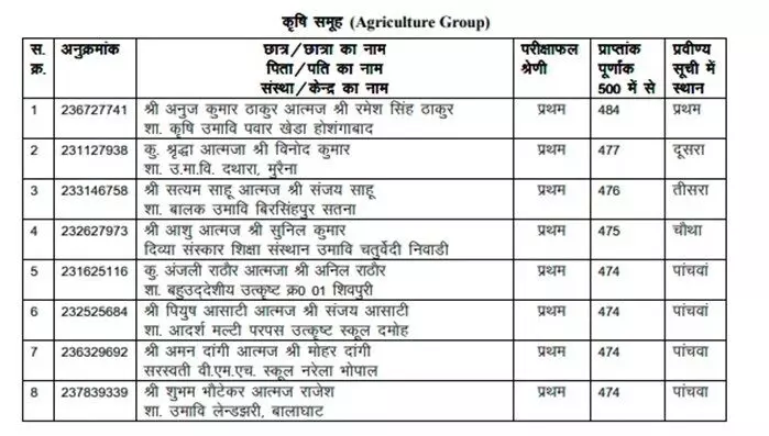 MP Board 12th Topper 2023 List: एग्रीकल्चर ग्रुप में इन बच्चो ने मारी बाज़ी