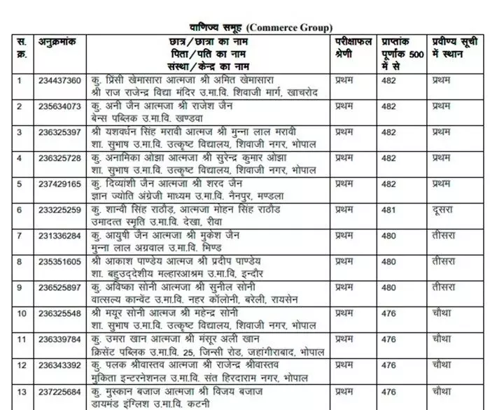 MP Board 2023: एमपी बोर्ड कामर्स टापर्स की लिस्ट