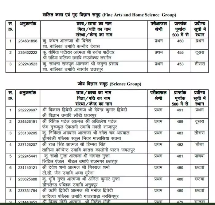 MP Board Topper List 2023: यहां देखिये साइंस और होम साइंस के Toppers की लिस्ट