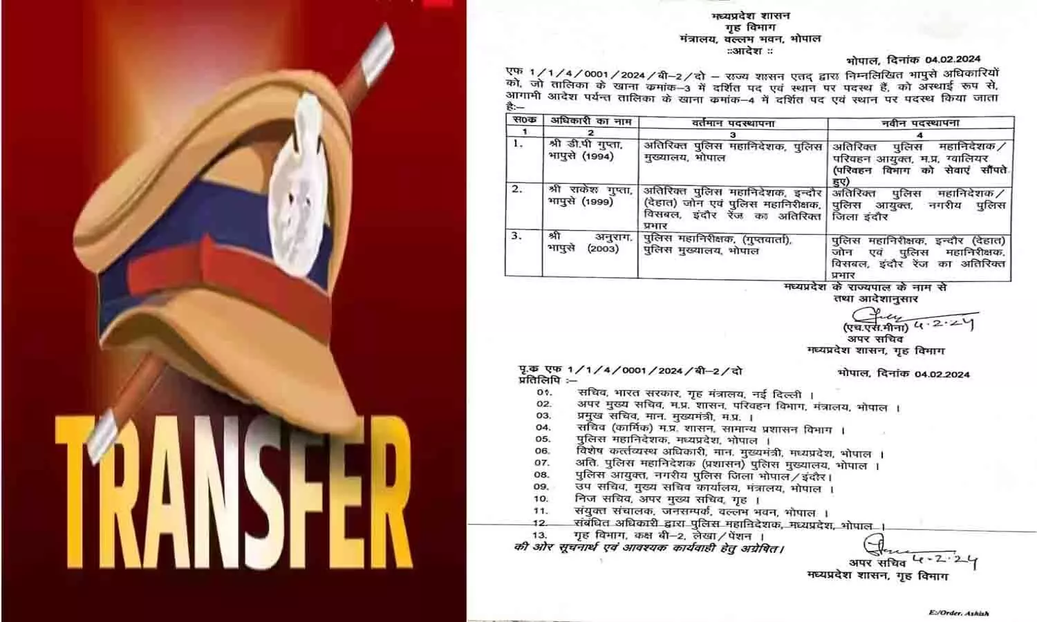 आदेश के मुताबिक आईपीएस राकेश गुप्ता इंदौर के नए पुलिस कमिश्नर बनाए गए हैं। आईपीएस अनुराग को इंदौर देहात का आईजी नियुक्त किया गया है। शासन ने अनुराग को इंदौर रेंज विसबल का भी प्रभार सौंपा है।