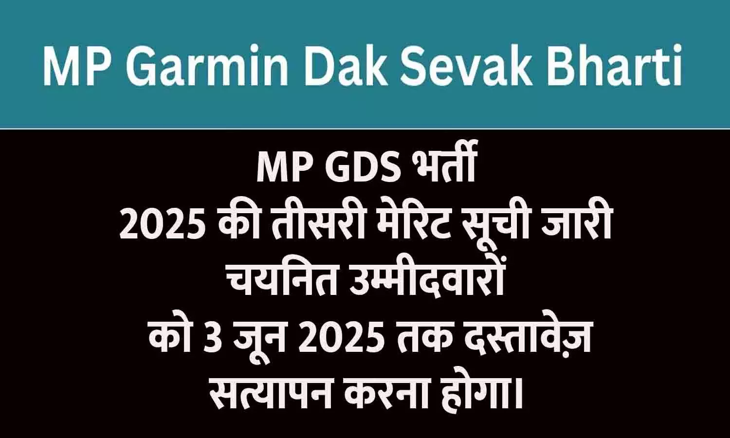 मध्य प्रदेश ग्रामीण डाक सेवक भर्ती 2025: तीसरी मेरिट सूची जारी (MP GDS Teesri Merit List Kaise Download Kare, MP Gramin Dak Sevak 3rd Merit List kaise dekhen, MP GDS 3rd Selection List kaise download kare)