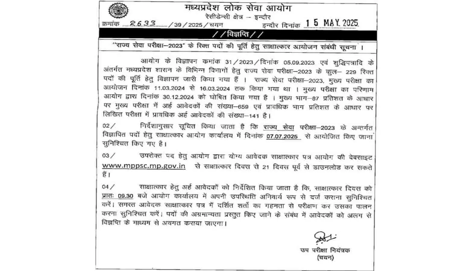 MPPSC इंटरव्यू तारीख घोषित | MPPSC Interview Date Announced 2025