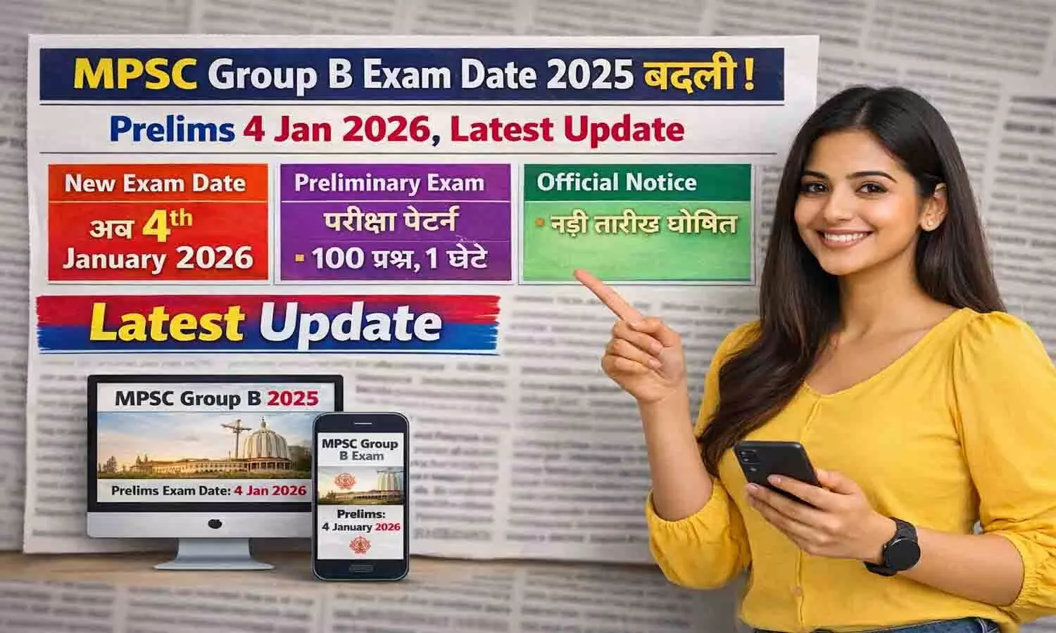 MPSC Group B प्रारंभिक परीक्षा अब 4 जनवरी 2026 को आयोजित की जाएगी।