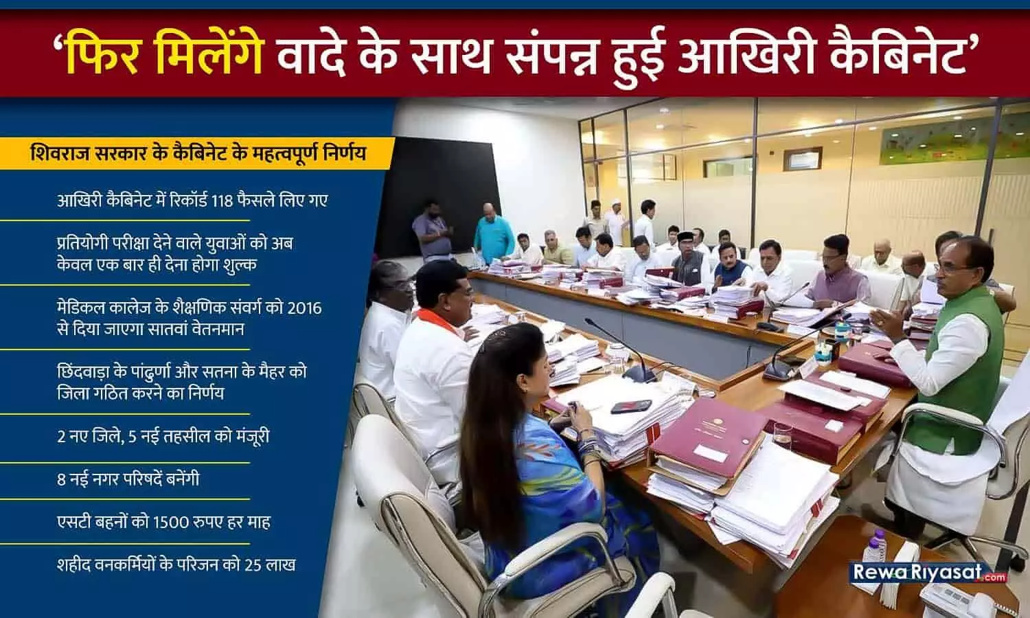 फिर मिलने के वादे के साथ शिवराज सरकार की आखिरी कैबिनेट संपन्न: रिकॉर्ड 118 फैसले, 2 नए जिले, 5 नई तहसील को मंजूरी; पढ़ें महत्वपूर्ण निर्णय