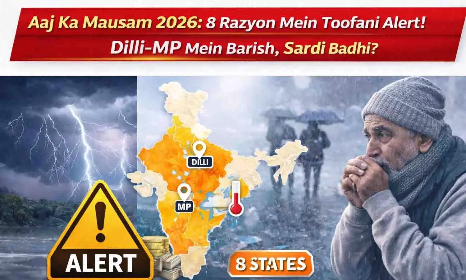 Aaj Ka Mausam 2026: 8 राज्यों में तूफानी Alert! दिल्ली-MP में बारिश, सर्दी बढ़ी?