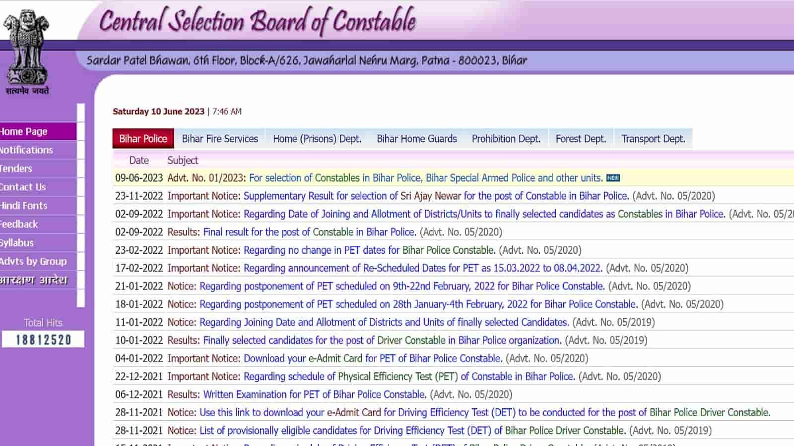 CSBC Bihar Police Constable Bharti / Vacancy 2023: पुलिस में नौकरी करने का सपना देखने वाले युवाओं एक लिए बड़ी खबर सामने आ रही है। केन्द्रीय चयन पर्षद (सिपाही भर्ती) ने बिहार पुलिस में कांस्टेबल की बंपर भर्ती का नोटिफिकेशन जारी कर दिया है बिहार पुलिस में 21391 कांस्टेबलों की भर्ती निकाली गई है।
