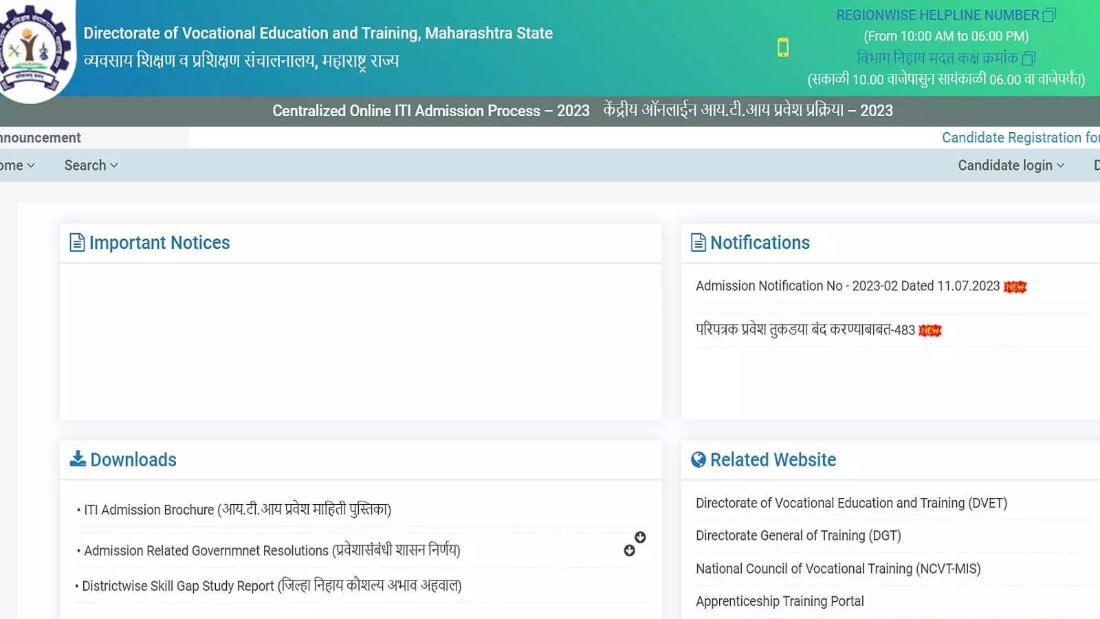 DVET Maharashtra ITI 1st Merit List 2023: महाराष्ट्र के लाखो युवाओं के लिए बड़ी खबर सामने आ रही है। महाराष्ट्र में आईटीआई में एडमिशन लेने की इक्छा रखने वाले उम्मीदवार के लिए बड़ी खबर सामने आ रही है। महाराष्ट्र राज्य व्यावसायिक शिक्षा और प्रशिक्षण निदेशालय (DVET) द्वारा ITI की पहली मेरिट सूची 2023 (DVET Maharashtra ITI 1st Merit List 2023) जारी कर दिया गया है। अब उम्मीदवार इसे ऑनलाइन देख
