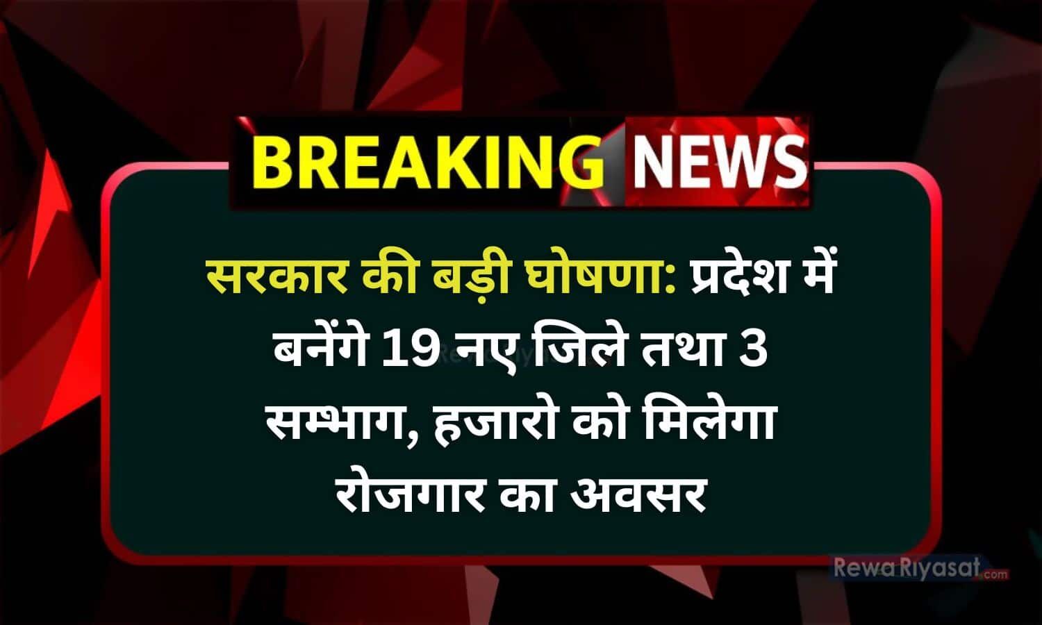 सरकार की बड़ी घोषणा: प्रदेश में बनेंगे 19 नए जिले तथा 3 संभाग, हजारो को मिलेगा रोजगार का अवसर