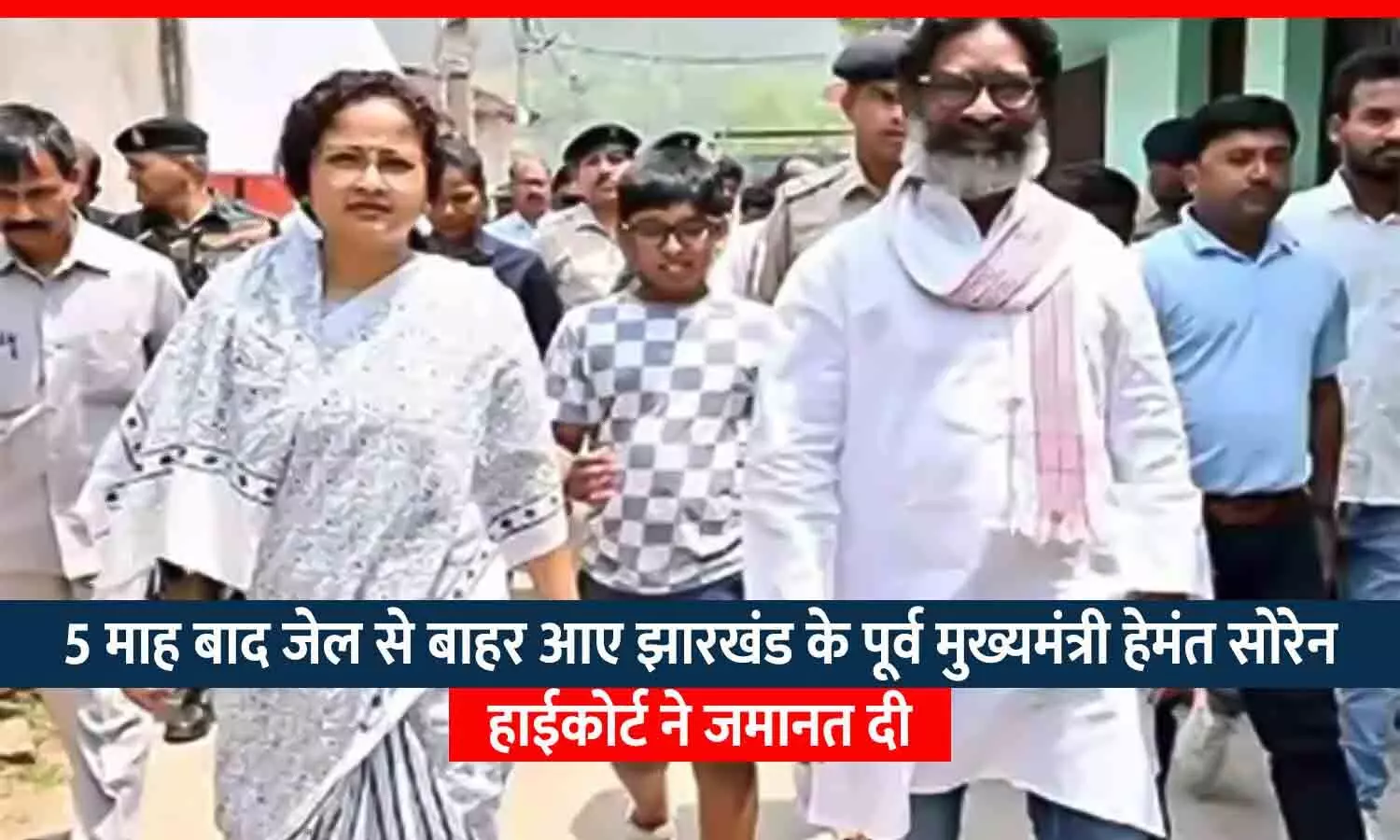 हेमंत सोरेन शुक्रवार 28 जून को रांची के बिरसा मुंडा जेल से बाहर आ गए हैं। इस दौरान उनकी पत्नी कल्पना सोरेन उन्हे लेने के लिए जेल पहुंची हुई थी। साथ ही जेल के बाहर समर्थकों ने सोरेन का स्वागत किया।