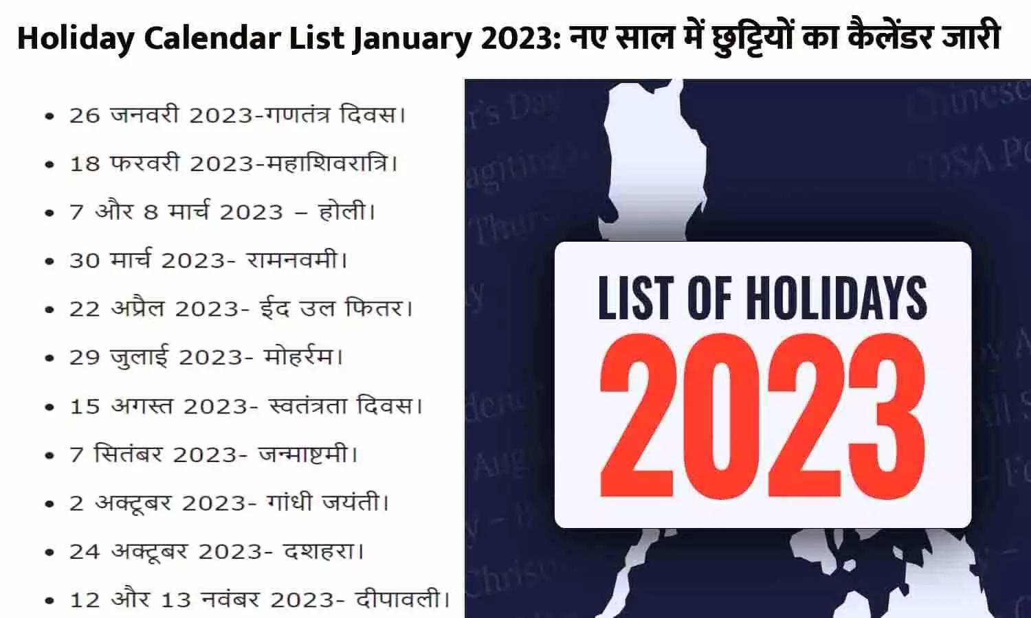 Holiday Calendar List January 2023: जारी हुआ कैलेंडर! नए साल में मिलेगी इतने दिन की छुट्टी, 2023 में कर्मचारियों समेत इन्हें मिलेगा लाभ