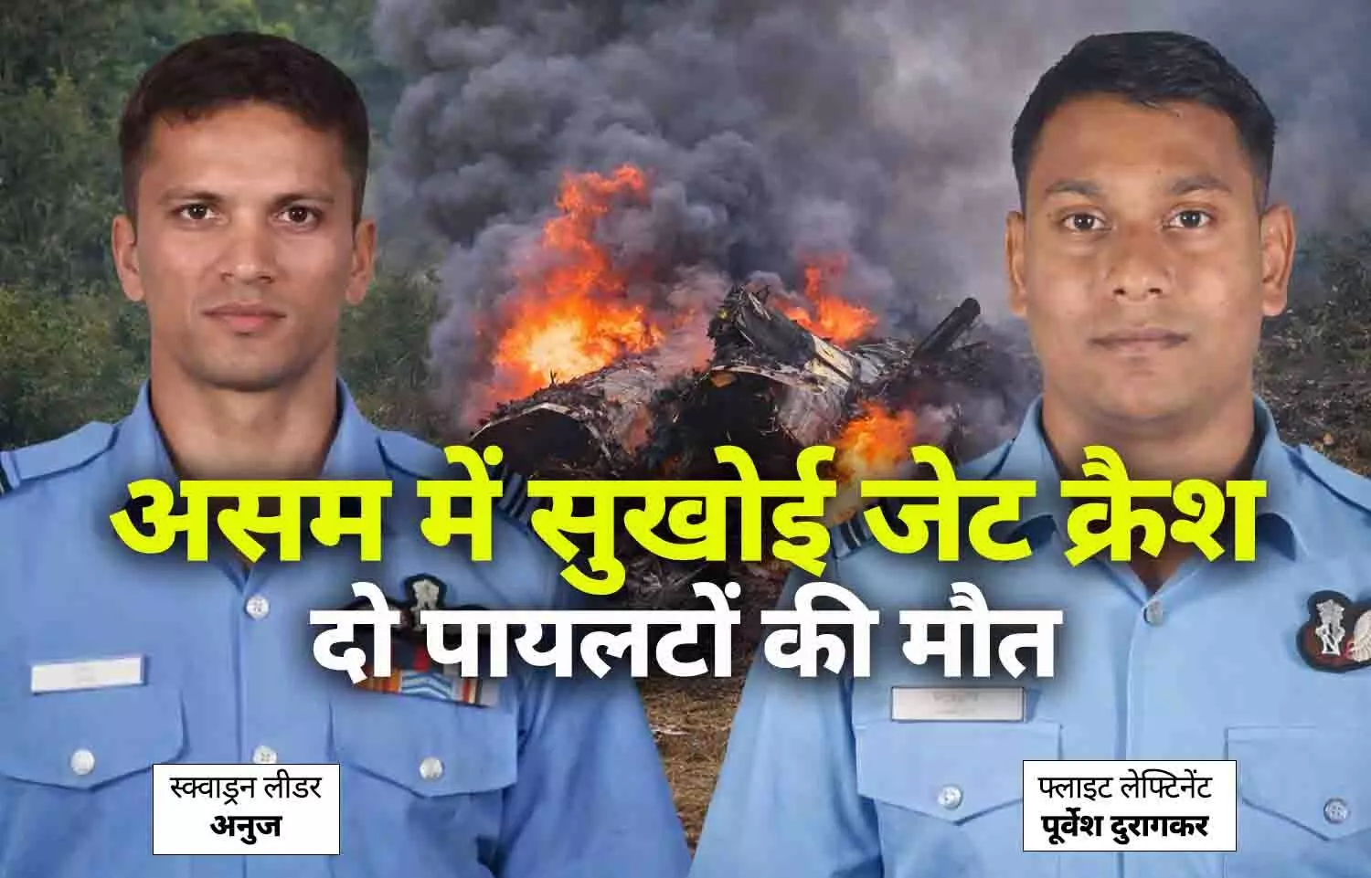 भारतीय वायुसेना ने गुरुवार देर रात 1 बजकर 9 मिनट पर आधिकारिक रूप से पुष्टि की कि असम के कार्बी आंगलोंग इलाके में लापता हुआ Su-30MKI फाइटर जेट दुर्घटनाग्रस्त हो गया है। इसके बाद शुक्रवार सुबह 9 बजकर 14 मिनट पर सोशल मीडिया पोस्ट के माध्यम से दोनों पायलटों के निधन की जानकारी दी गई।