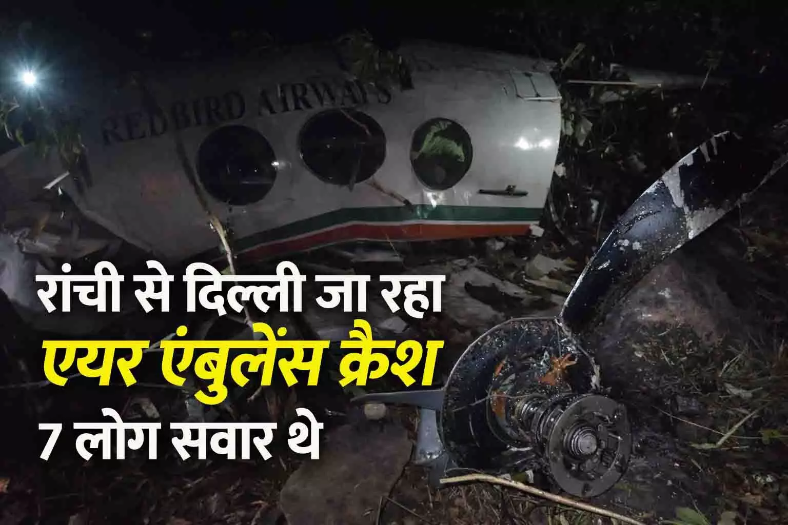 झारखंड के चतरा जिले के समरिया जंगल में रांची से दिल्ली जा रही एयर एंबुलेंस क्रैश हो गई। प्रशासन ने पुष्टि की है कि विमान में सवार सभी सात लोगों की मौत हो गई है।