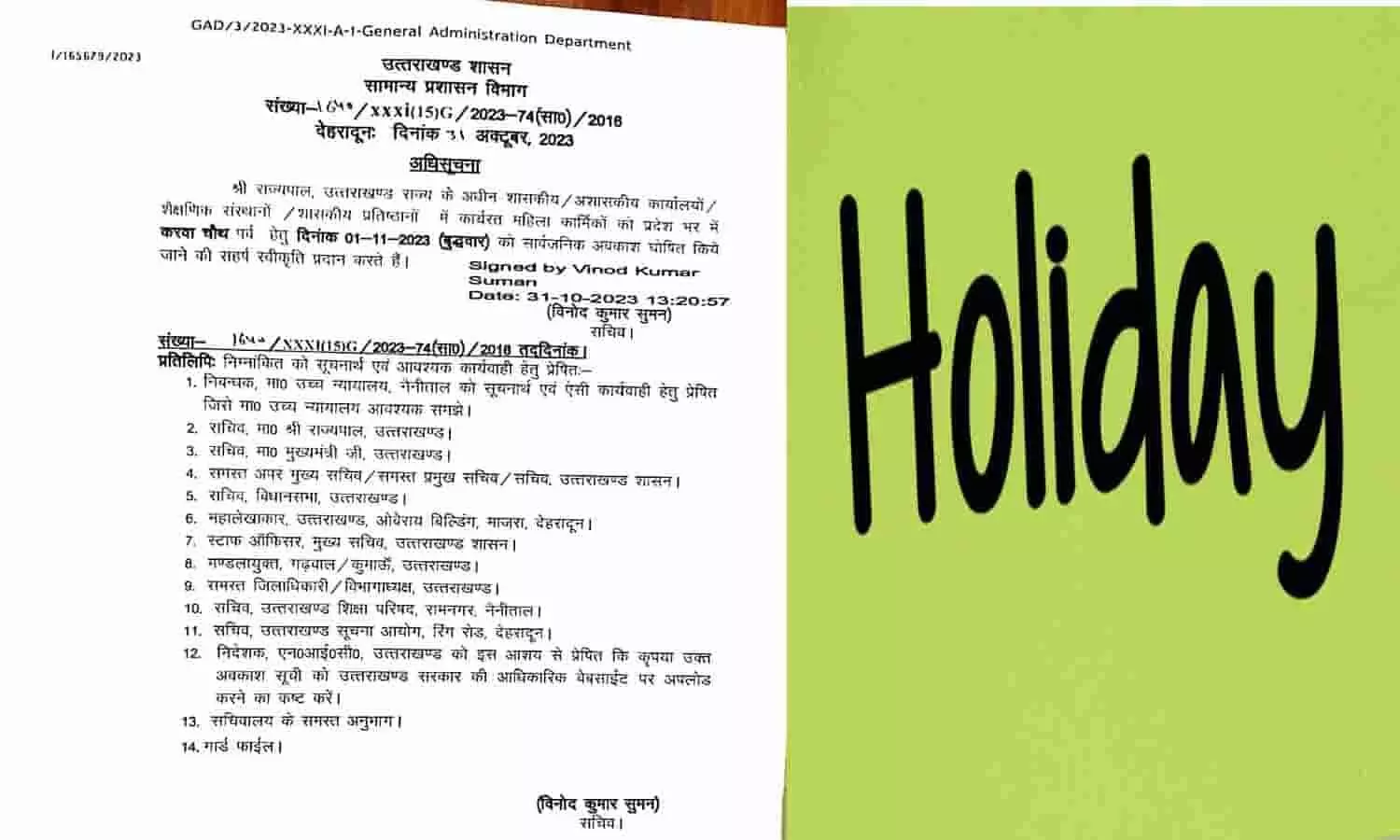 Uttarakhand Holiday Tomorrow, 1 Novemer 2023 Uttarakhand Holiday
