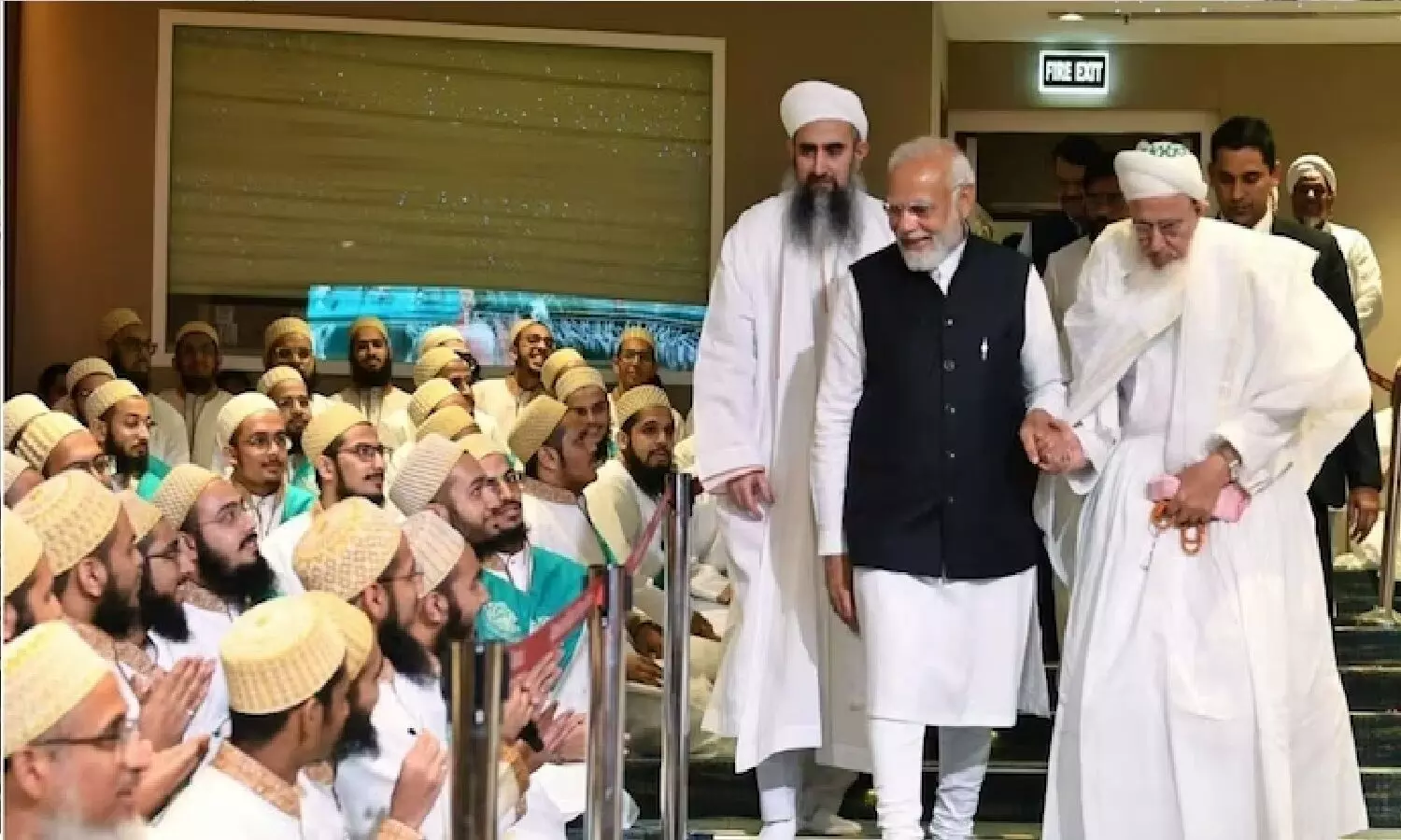इसके बाद पीएम मोदी के होटल के पास उनका इन्तकार कर रहे भारतीय मूल के लोगों ने पीएम मोदी का स्वागत किया। इस दौरान वंदेमातरम और मोदी-मोदी के नारे भी लगे। साड़ी पहन मिस्र की एक महिला जेना ने मोदी को फिल्म शोले का गीत ‘ये दोस्ती हम नहीं छोड़ेंगे...’ गाकर सुनाया।