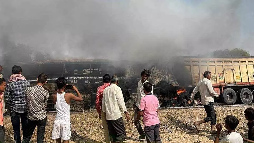 Rajasthan Barmer Bus Accident: ट्रेलर-बस की टक्कर के बाद लगी भीषण आग, 12 लोगो की मौत