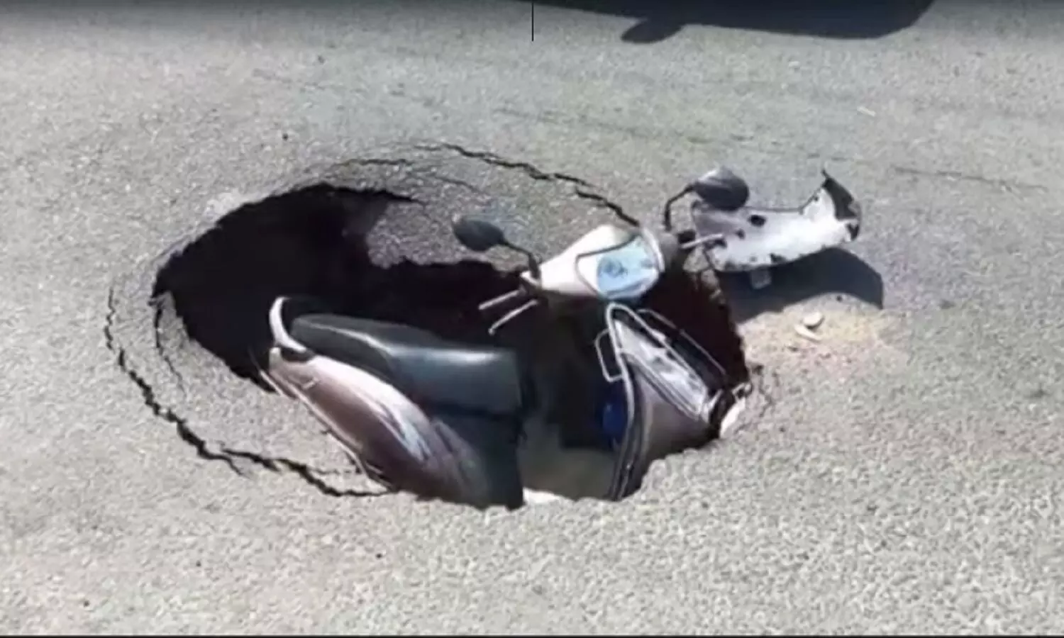 Rajsthan: जब चमचमाती सड़क बन गई खाई, स्कूटर लेकर बुजुर्ग सड़क में 5 फिट नीचे समाए