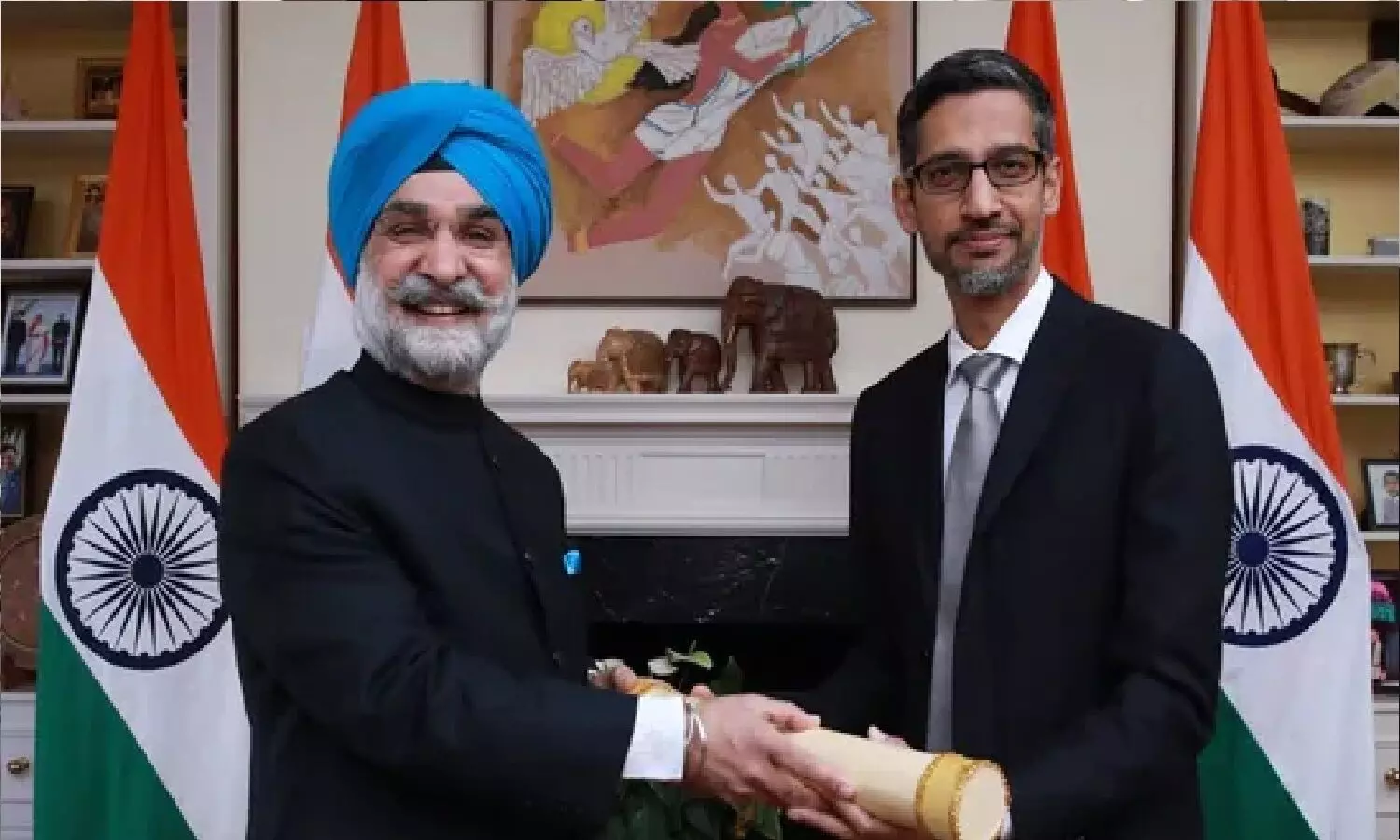 Sundar Pichai honored with Padma Bhushan: गूगल और Google की पेरेंट कंपनी अल्फाबेट के CEO सुंदर पिचाई (Sundar Pichai) को भारत सरकार ने पद्म भूषण से सम्मानित किया। अमेरिका में भारत के राजदूत तरनजीत सिंह संधू (Taranjit Singh Sandhu) ने उन्हें पिचाई को पद्म भूषण सौंपा। इस दौरान Alphabet CEO ने कहा 'भारत मेरा एक हिस्सा है, मैं जहां भी जाता हूं, इसे अपने साथ ले जाता हूं.
