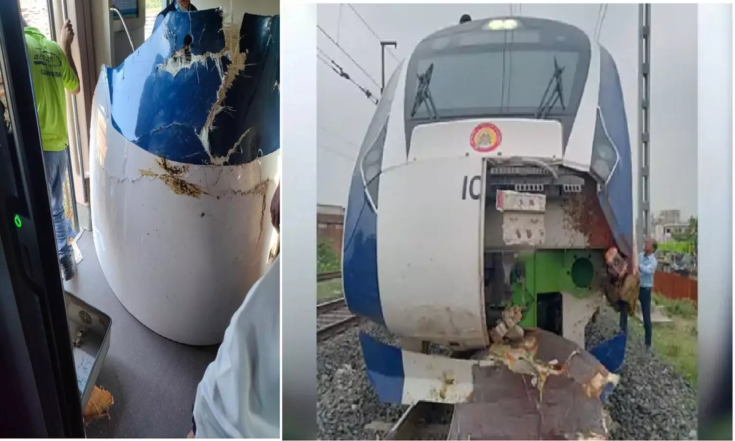 बैल से टकराई वंदे भारत एक्सप्रेस! इससे पहले गाय और भैसों के झुंड से टकराकर टूटी थी