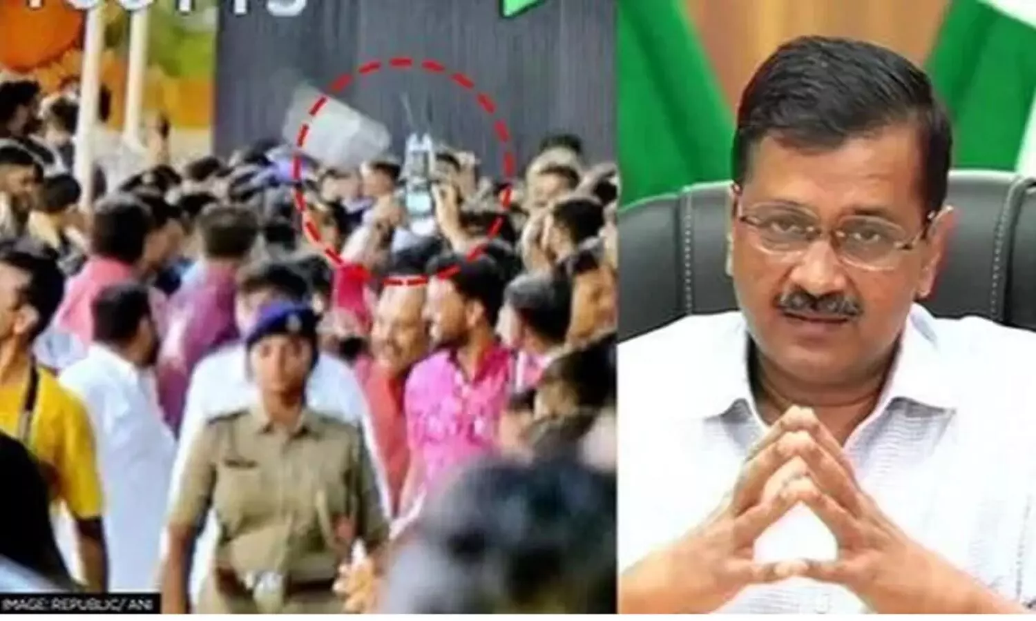 गुजरात में अरविंद केजरीवाल के ऊपर फेंकी पानी की बोतल, राजकोट में गरबा कार्यक्रम में गए थे
