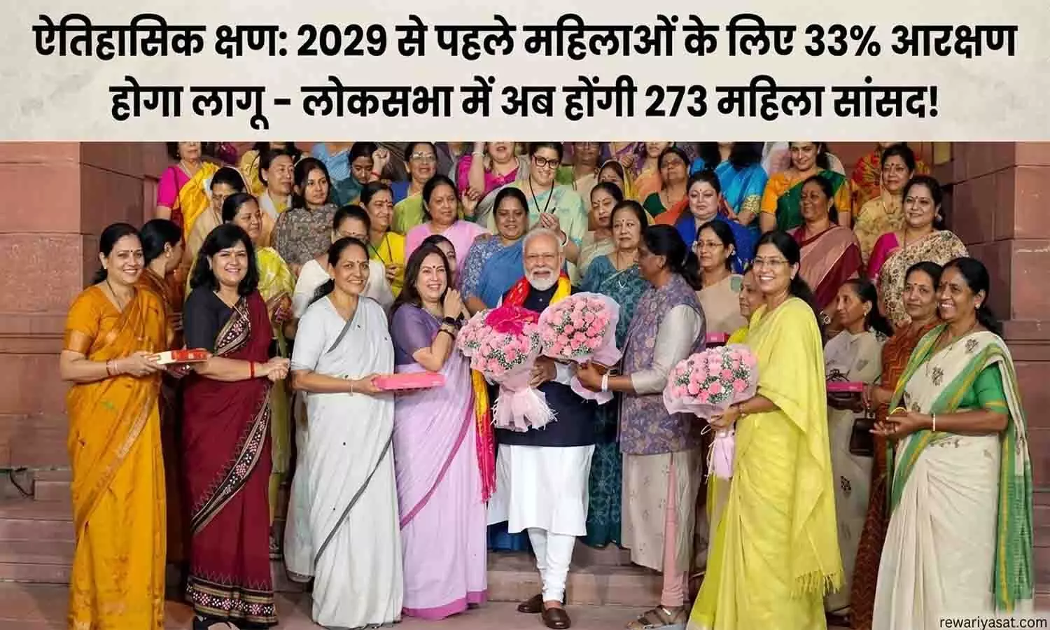 ऐतिहासिक क्षण: 2029 चुनाव से पहले लागू हो सकता है 33% महिला आरक्षण, लोकसभा में महिलाओं के लिए सुरक्षित होंगी 273 सीटें।