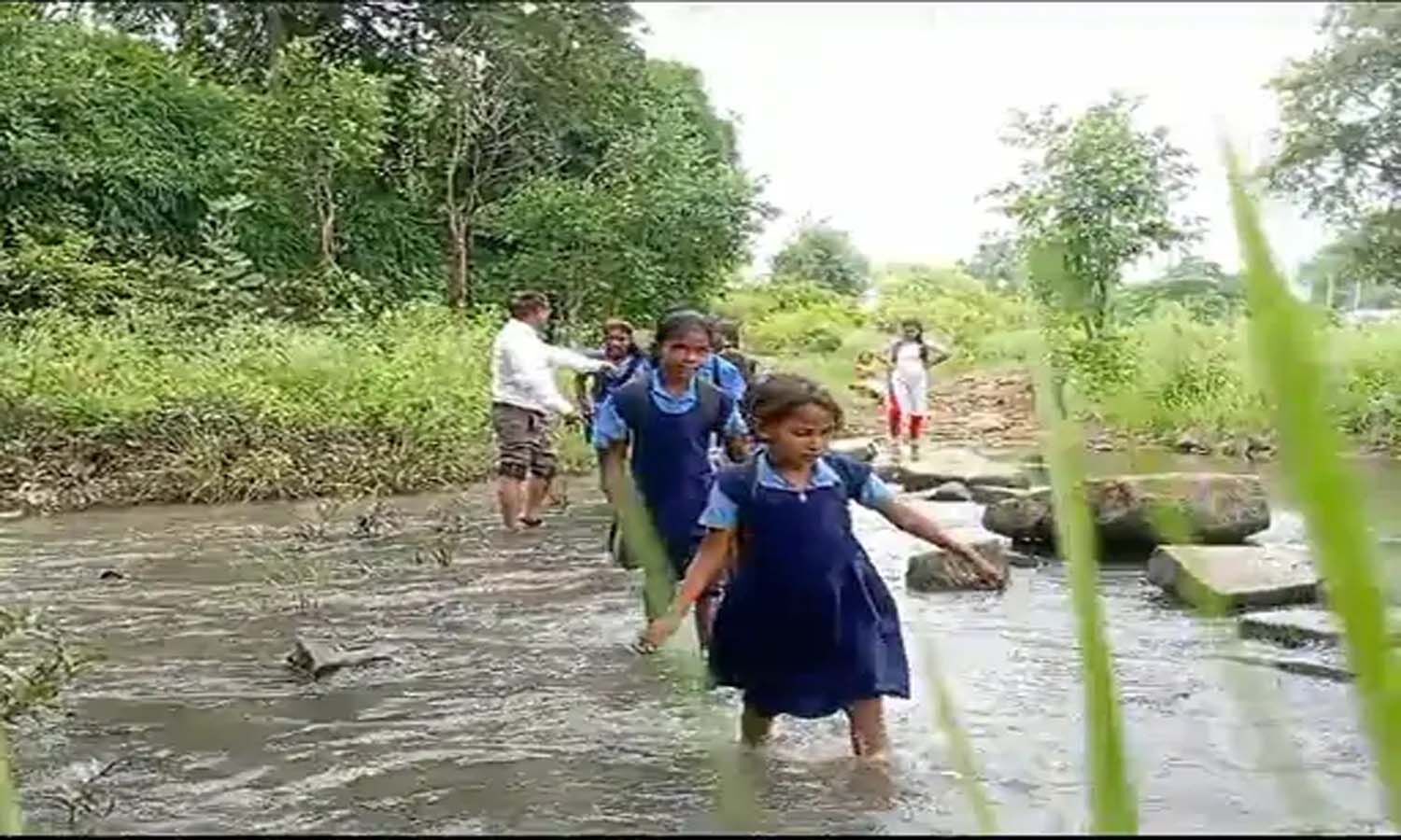 एमपी के पन्ना स्थित आदिवासी बाहुल्य गांव का हाल बेहाल, जान जोखिम में डाल नाला पार कर स्कूल जाते हैं नौनिहाल