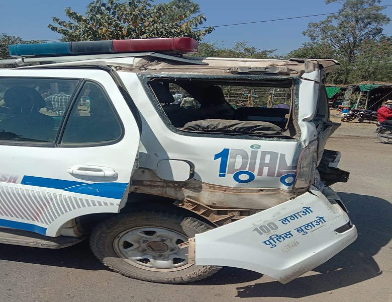 बल्कर की चपेट में आया डायल 100, पुलिस कर्मियों ने फिर ऐसे बचाई जान : REWA LOCAL NEWS