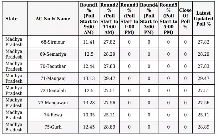 रीवा-मऊगंज जिले की सभी 8 विधानसभा सीटों पर सुबह 12 बजे तक हुए मतदान की स्थिति...