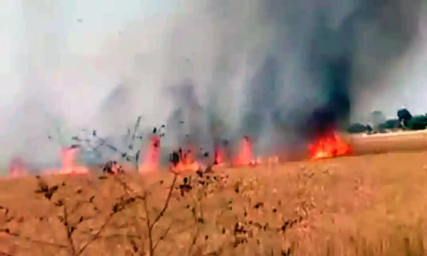 रीवा: किसान हुए बर्बाद, खड़ी फसल में फैली आग