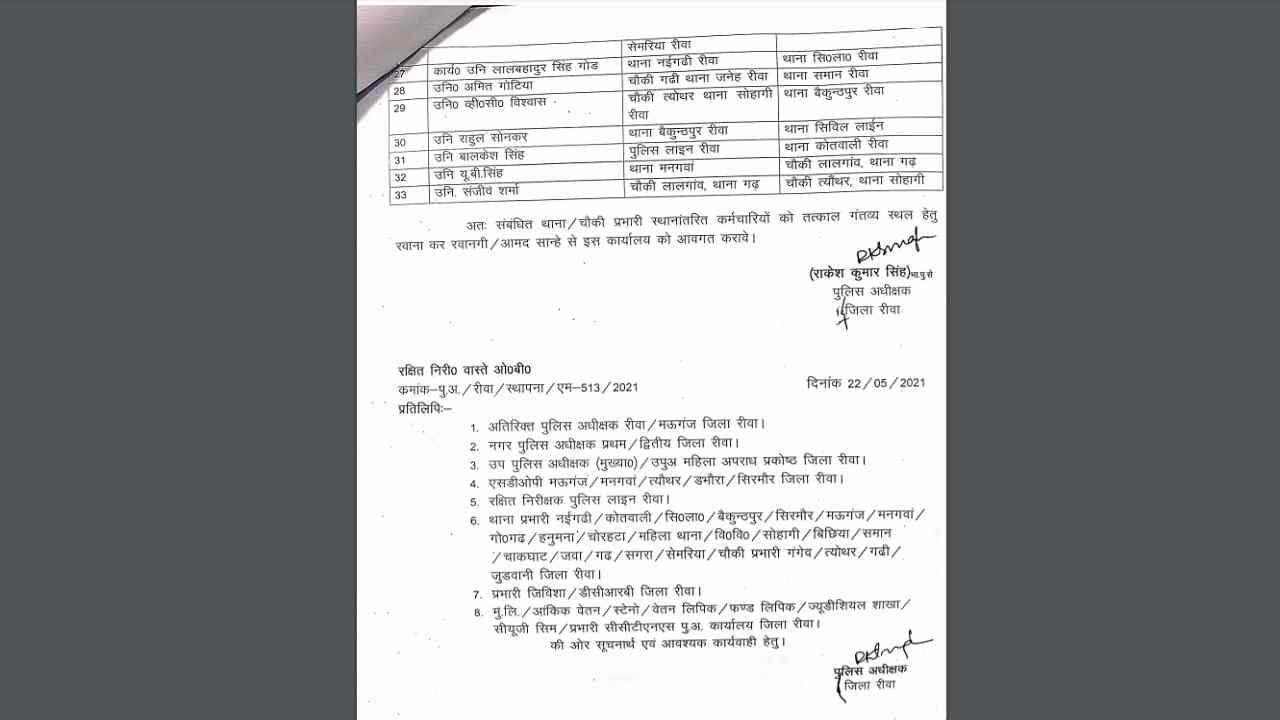 Rewa में पहली बार एक साथ 33 पुलिसकर्मियों का एक साथ तबादला, देखे पूरी लिस्ट