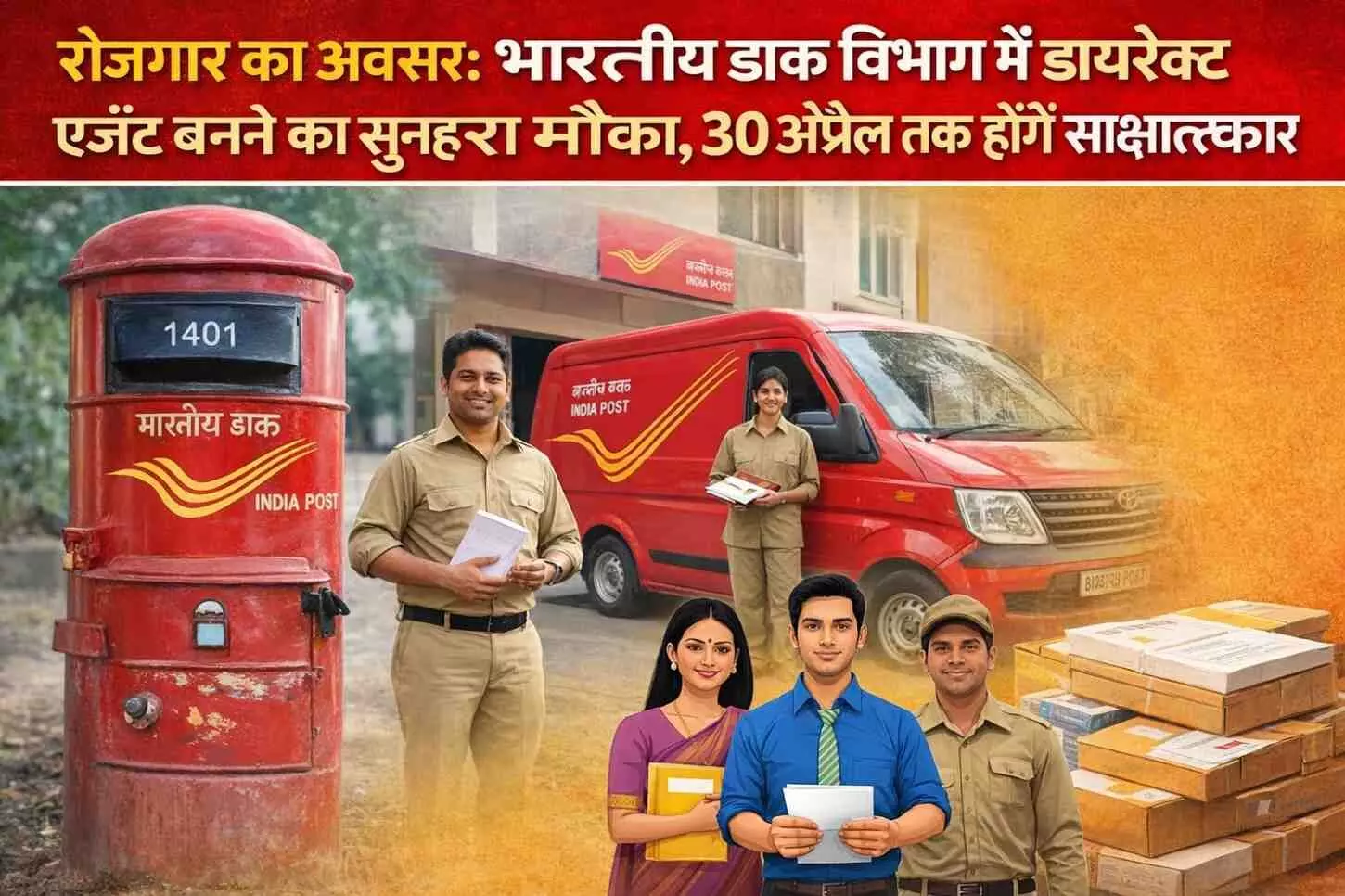 रोजगार का अवसर: भारतीय डाक विभाग में डायरेक्ट एजेंट बनने का मौका, 30 अप्रैल तक होंगे इंटरव्यू