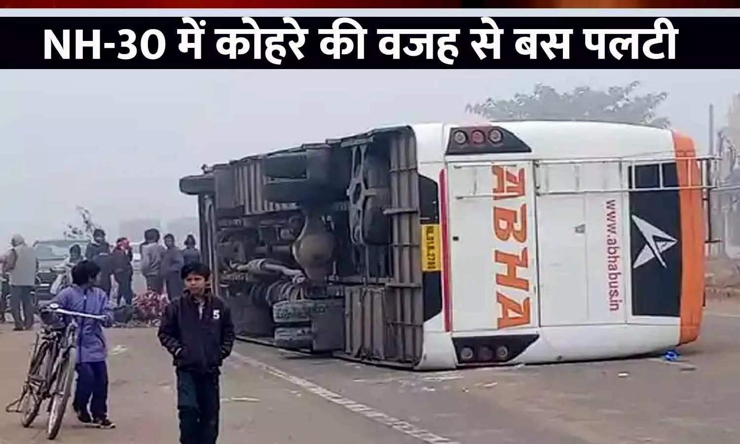 रीवा के गढ़ में यात्री बस पलटी, कोहरा बना वजह; 6 घायल