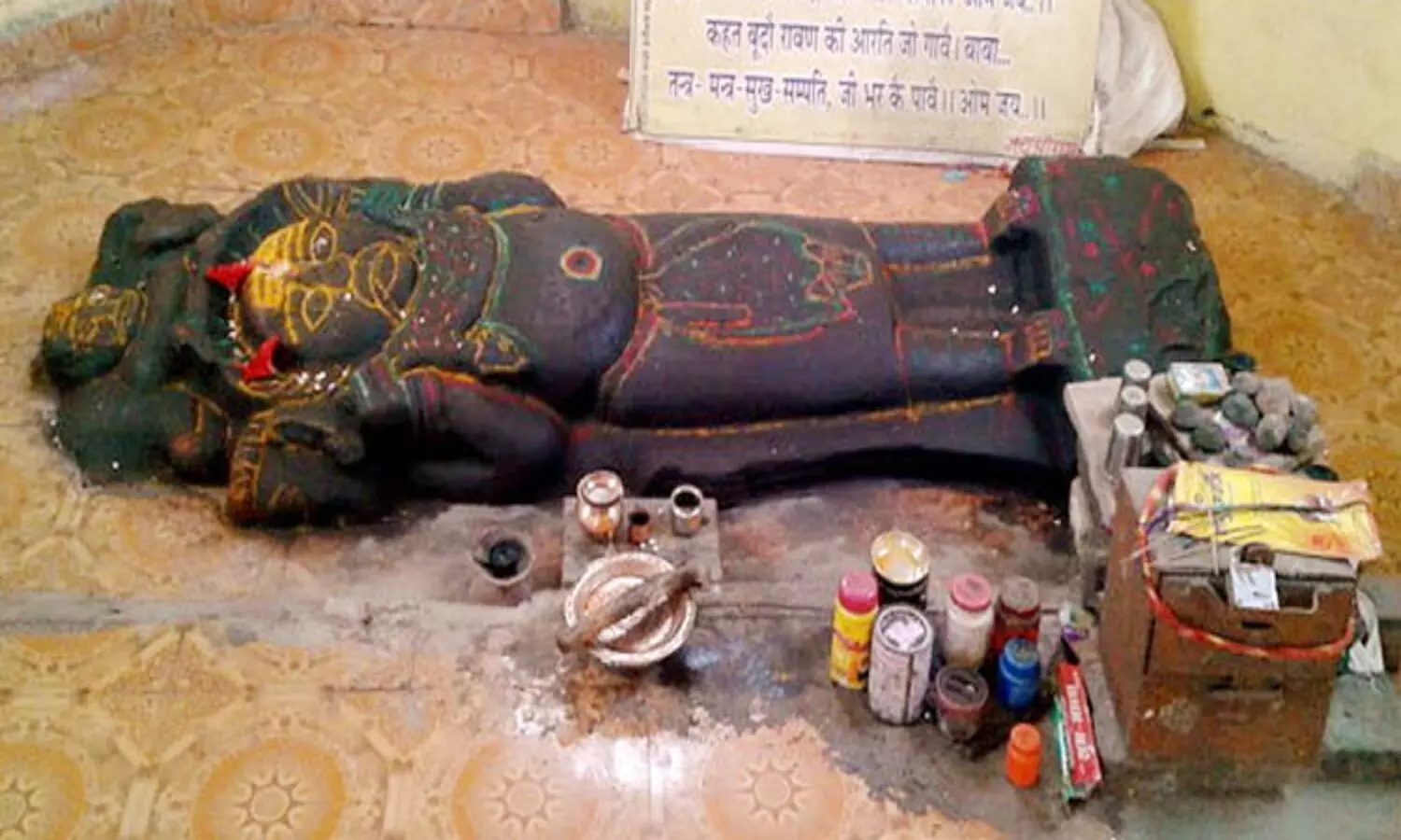 इस मंदिर के यहां होने की घटना के पीछे एक पौराणिक कहानी इस गाँव में प्रचलित है, जिसके अनुसार- त्रेतायुग में गाँव के रावण बाबा के मंदिर के उत्तर दिशा में 3 किलोमीटर दूर स्थित पहाड़ी राक्षस का निवास था।