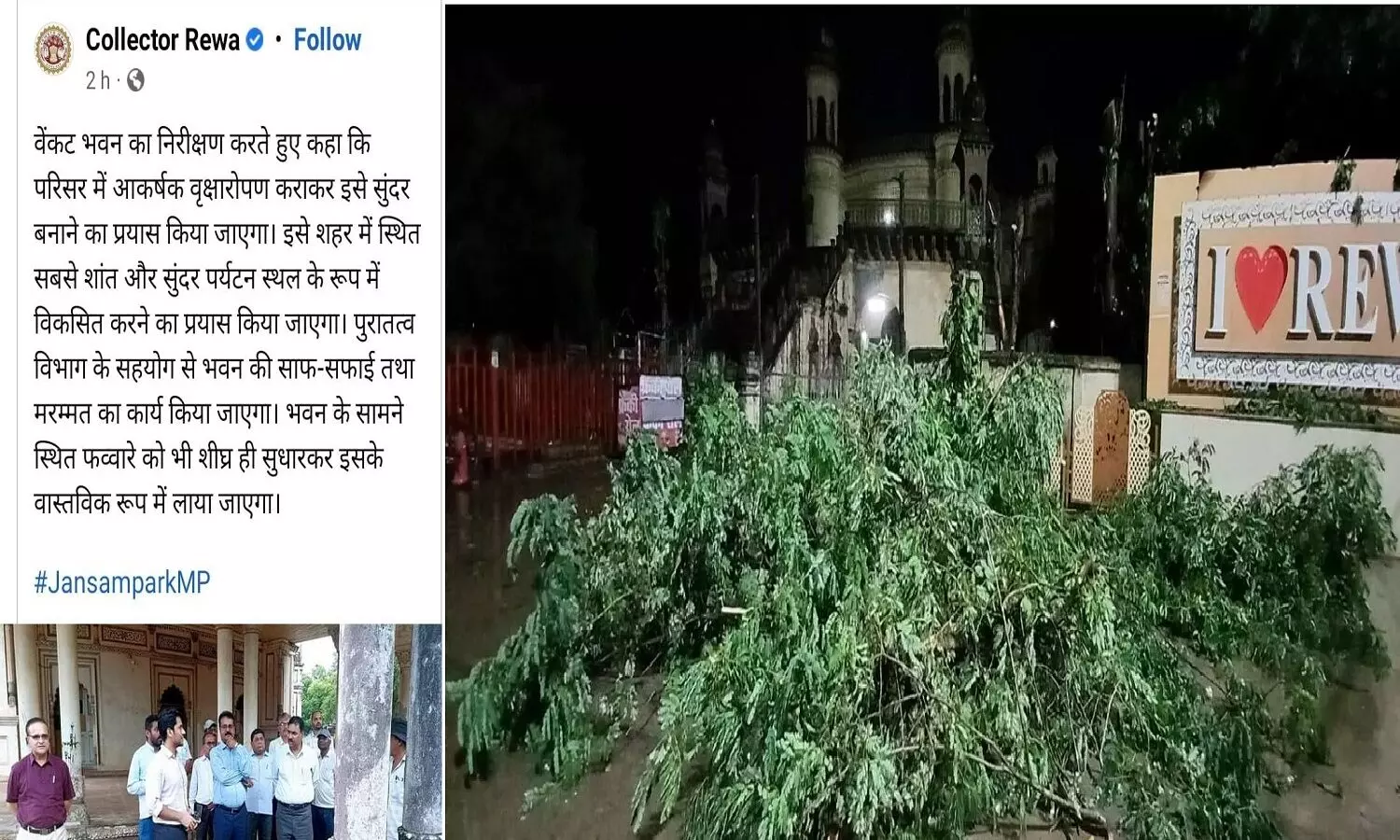 19 सितम्बर को रीवा के कलेक्टर मनोज पुष्प (Manoj Pushp) और रीवा नगर निगम के कमिश्नर मृणाल मीणा (Mrinal Meena) दोनों IAS अफसर गए थे वेंकट भवन का निरीक्षण करने के लिए. वहां गए तो वेंकट भवन की दुर्दशा को देखा। दुर्दशा हुई भी तो प्रशासन की उदासीनता के कारण। तो अधिकारी लोगों ने वेंकट भवन को रेनोवेट करने की योजना बनाई। लेकिन वेंकट भवन के सौन्दर्यीकरण की शुरुआत ऐसी चीज़ से हुई कि जिसने देखा उसका माथा ठनक गया. रीवा एडमिनिस्ट्रेशन ने रेनोवेशन के नाम पर वेंकट भवन परिसर में लगे पेड़ों को बीच तने से कटवा दिया।