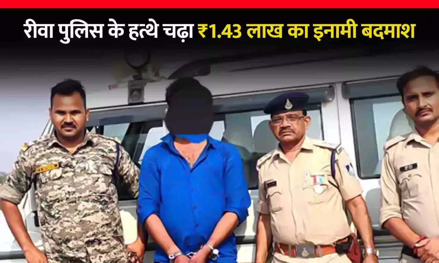 रीवा पुलिस को बड़ी सफलता: ₹1.43 लाख का इनामी बदमाश गिरफ्तार, 46 मामलों में था फरार, रेप का भी है आरोपी