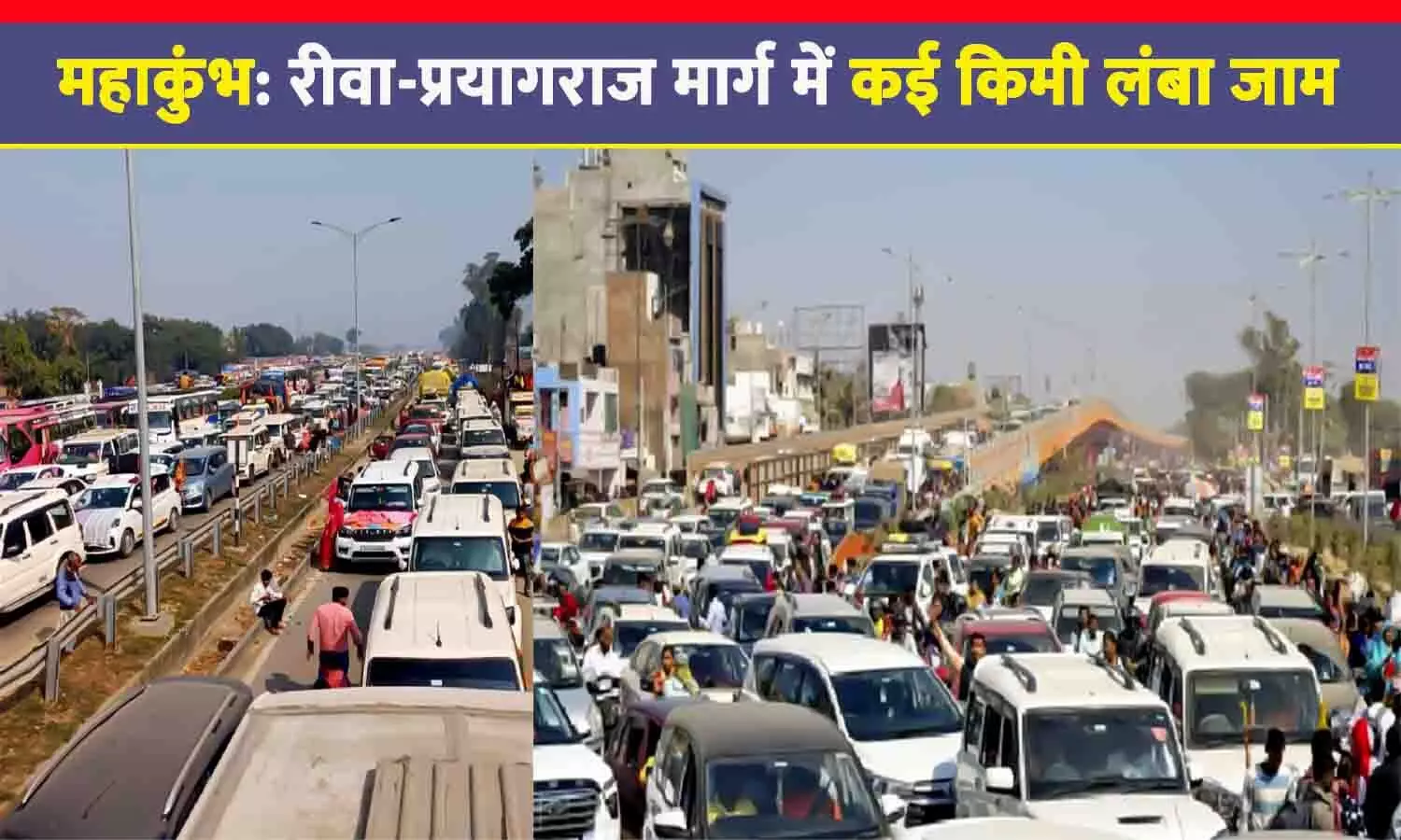 रीवा-प्रयागराज मार्ग पर कई किमी लंबा जाम: महाकुंभ जाने वाले श्रद्धालु फंसे, रीवा शहर के अंदर बाहरी वाहनों का आवागमन