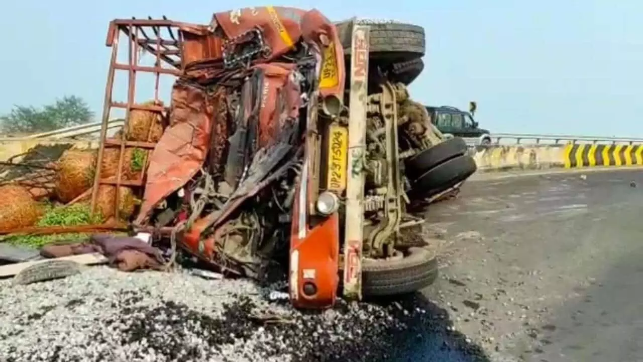 रीवा: जबलपुर से यूपी मटर लेकर जा रहा ट्रक पलटा, चालक की मौत