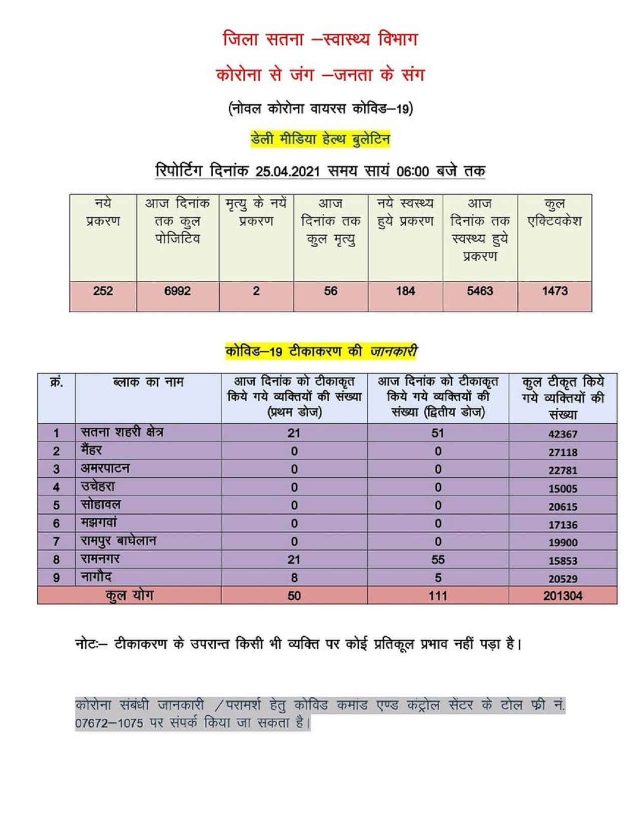 Satna : रविवार को मिले 252 नए कोरोना संक्रमित, 2 मरीजों ने गवाई जान, अब इस तारीख तक बढ़ाया गया Corona Curfew