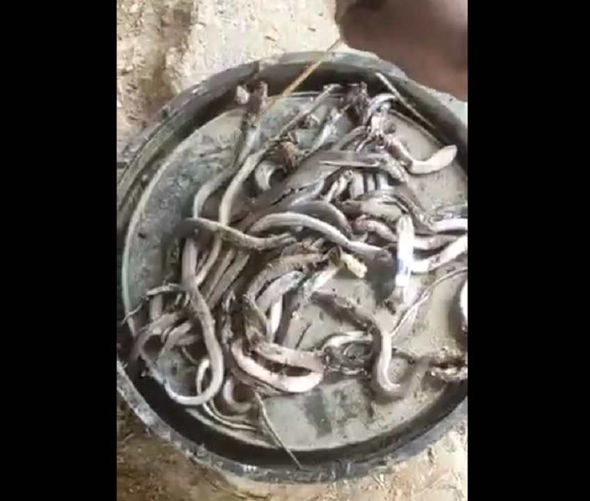 पहले निकले सर्प को मार दिया गया। बाद मे एक-एक कर 18 सर्प निकल चुके हैं। ऐसे में जहां घर के लोगों में दहशत व्याप्त है तो वहीं आसपड़ोस के लोग भी ससंकित है।