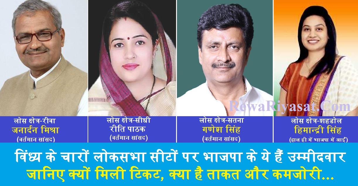 विंध्य के चारों लोकसभा सीटों पर भाजपा के ये हैं उम्मीदवार, जानिए क्यों मिली टिकट, क्या है इनकी ताकत और कमजोरी...