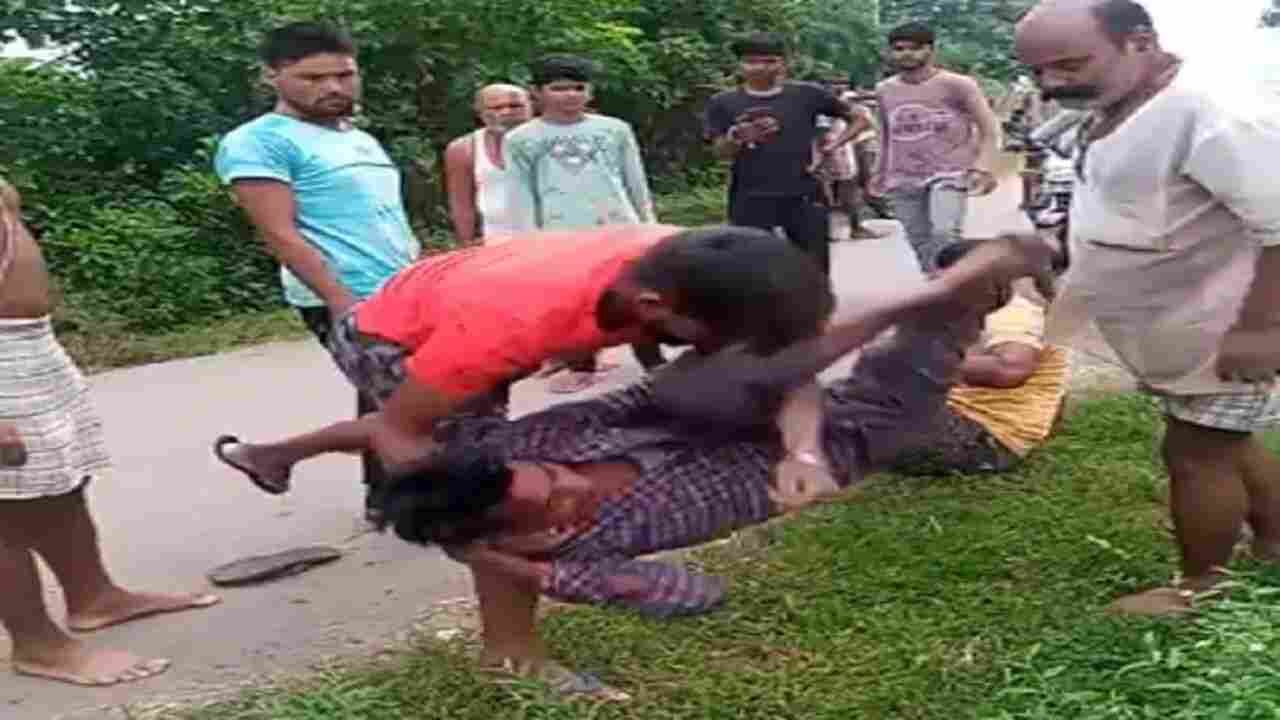 टक्कर के बाद युवक की गांव के लोगों ने मिलकर पिटाई कर दी। उसके जेब से बाइक की चाभी निकालने के दौरान उसके कपडे तक फाड़ डाले। जमीन पर पटक-पटक कर मारा।