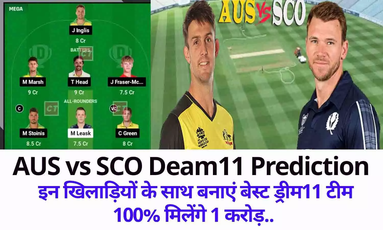 AUS vs SCO Deam11 Prediction: इन खिलाड़ियों के साथ बनाएं बेस्ट ड्रीम11 टीम, 100% मिलेंगे 1 करोड़..