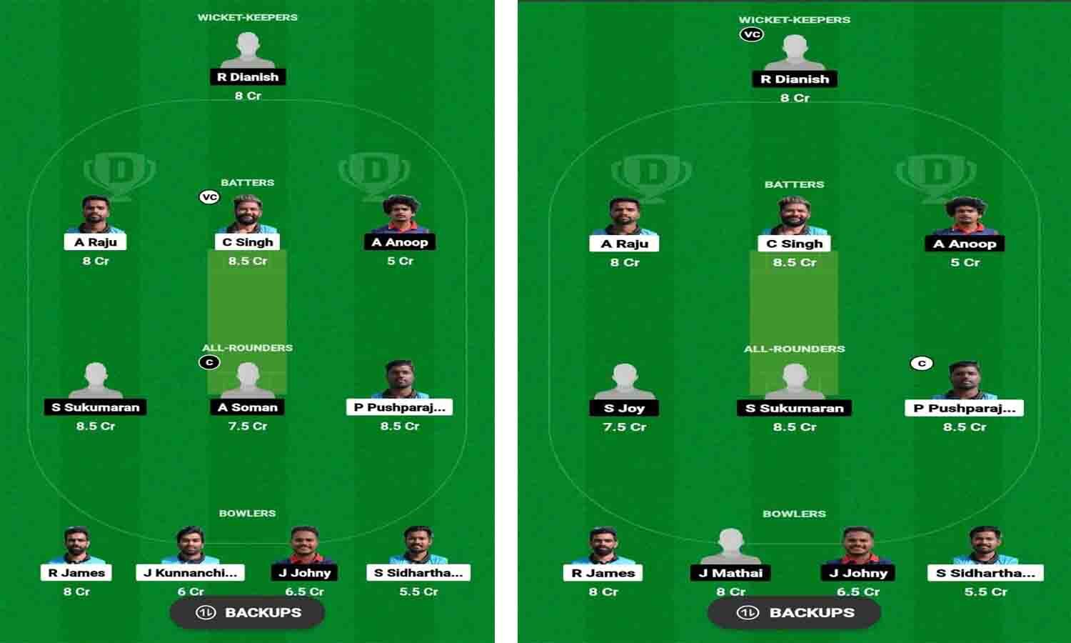 Royal Strikers: थानसीर ताहिर, चमकौर सिंह, चंजल सुदर्शन (विकेटकीपर), जमशीद कुन्ननचिरक्कल, वी बाबू, अश्विन राजू, प्रियन पुष्पराजन (सी), क्लिंटो पॉल, एस सिद्धार्थन, अधिथ राजन, जीतू जॉनी