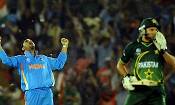 पाकिस्तान के खिलाफ मैच में, भारत ने टॉस जीता और पहले बल्लेबाजी करने का विकल्प चुना। सलामी बल्लेबाज वीरेंद्र सहवाग और सचिन तेंदुलकर ने 48 रन जोड़े। दोनों की साझेदारी सहवाग को पारी के तीसरे ओवर में पाकिस्तान के उमर गुल के जोरदार 21 रन लिए । हालांकि, पाकिस्तान को आखिरकार पारी के छठे ओवर में सफलता मिली क्योंकि वहाब रियाज ने सहवाग (25) को वापस पवेलियन भेज दिया।