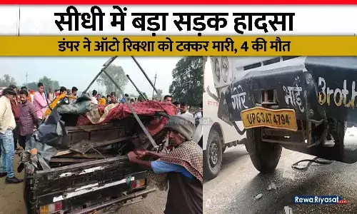 सीधी में बड़ा सड़क हादसा: डंपर ने ऑटो रिक्शा को टक्कर मारी, 4 की मौत; दो गंभीर घायल