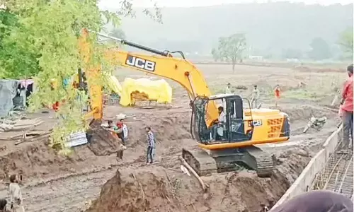 एमपी के विदिशा में जान जोखिम में डाल पोकलेन मशीन पर सवार होकर पुल पार कर रहे ग्रामीण