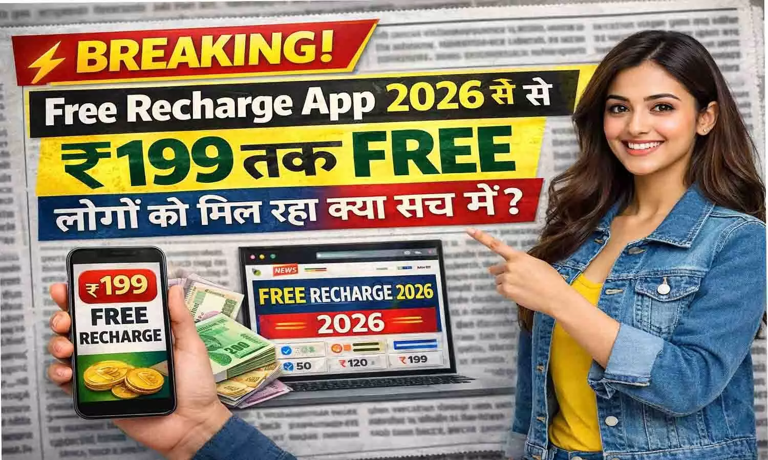 कुछ दिनों से सोशल मीडिया, YouTube, Telegram और कुछ ब्लॉग्स पर लगातार यह बात चलाई जा रही है कि “Free Recharge App 2026 से ₹199 तक का recharge बिल्कुल FREE मिल रहा है”। लोगों के स्क्रीनशॉट, वीडियो और fake proofs देखकर काफी यूजर्स confuse हो रहे हैं।