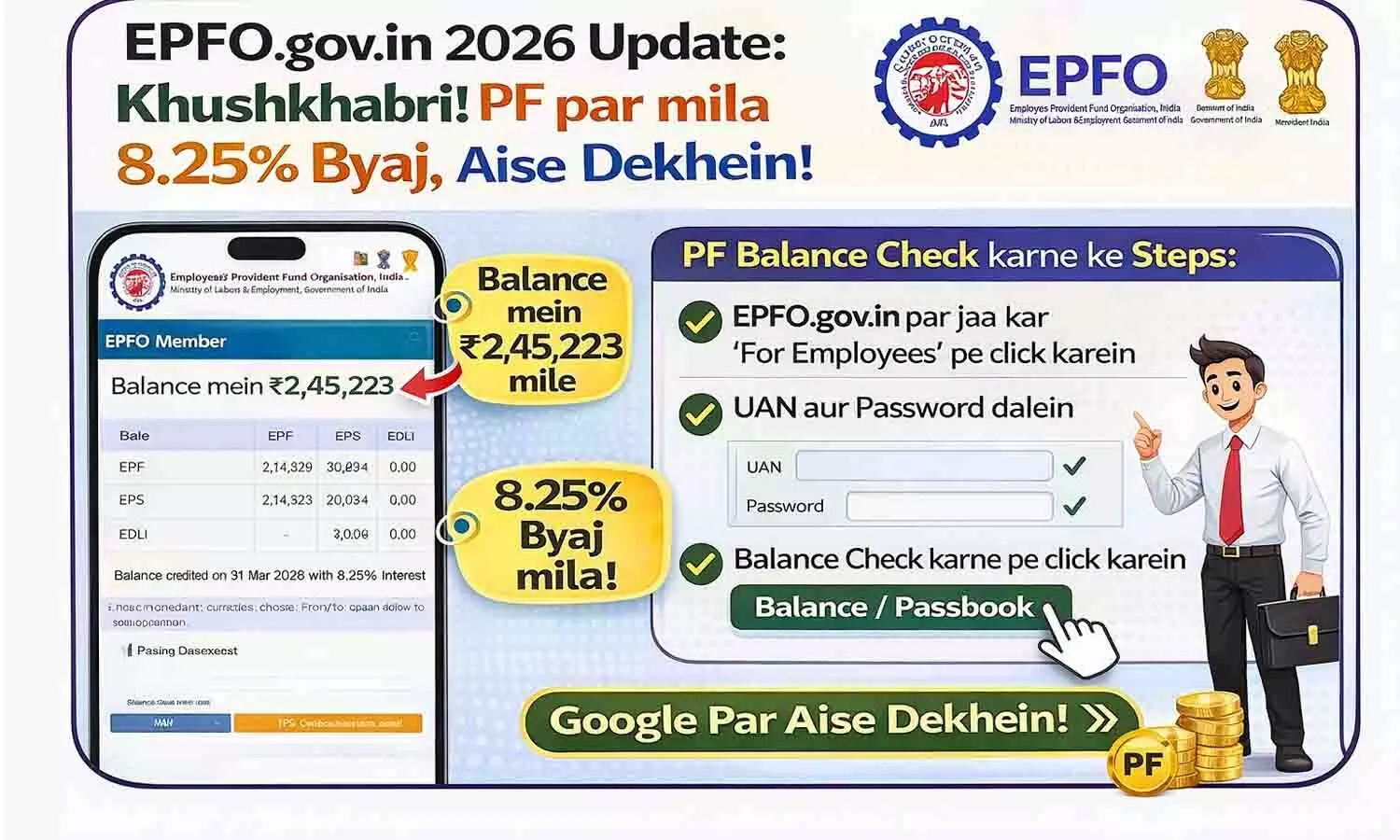 EPFO.gov.in 2026 Update: खुशखबरी! PF पर मिला 8.25% ब्याज, ऐसे देखें बैलेंस