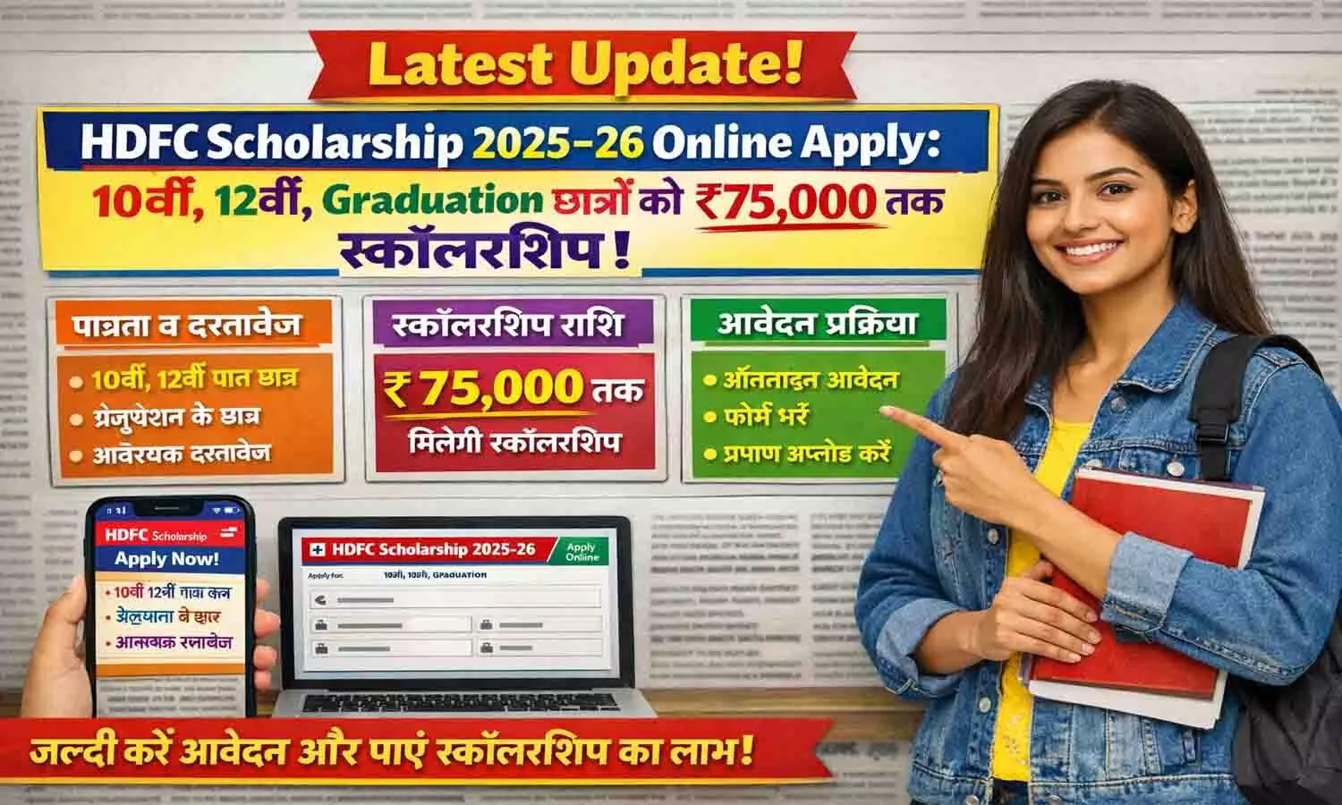 HDFC Scholarship 2025–26 Online Apply: 10वीं, 12वीं, Graduation छात्रों को ₹75,000 तक स्कॉलरशिप! पात्रता, दस्तावेज़ और आवेदन प्रक्रिया जानें